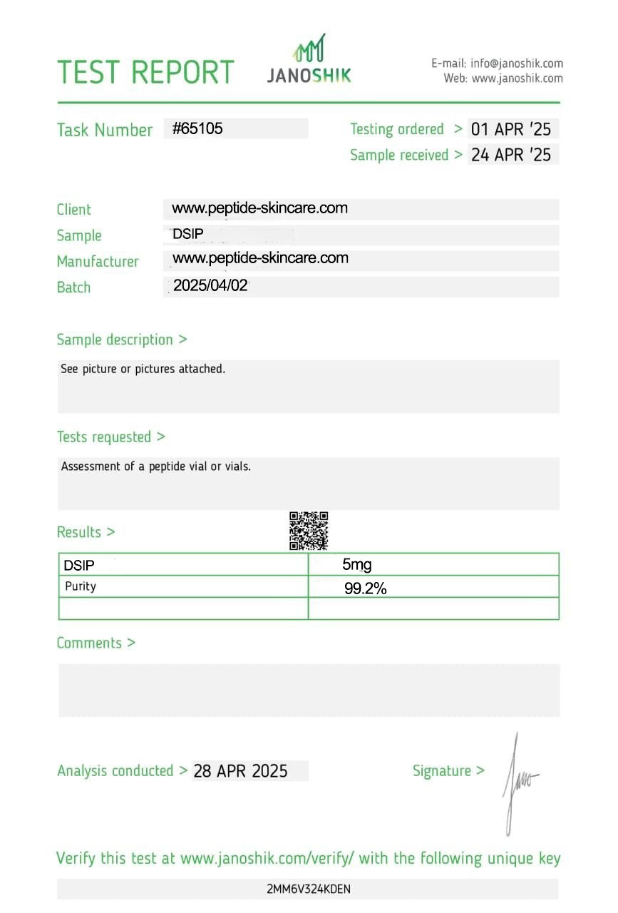 DSIP binds to multiple receptors in the central nervous system and promotes deep sleep, reduces fatigue, and stabilizes cortisol levels. It is also associated with improved adaptation to stress.