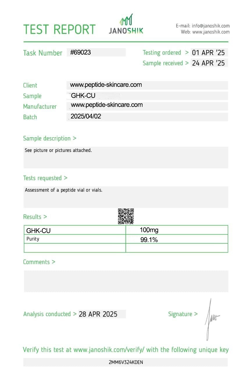 • GHK-Cu is a natural peptide that binds to copper, which is a key element in many biological processes, including collagen and elastin synthesis.